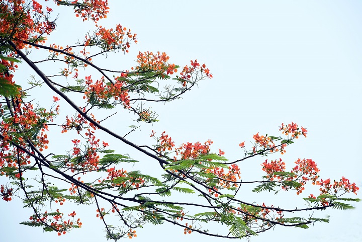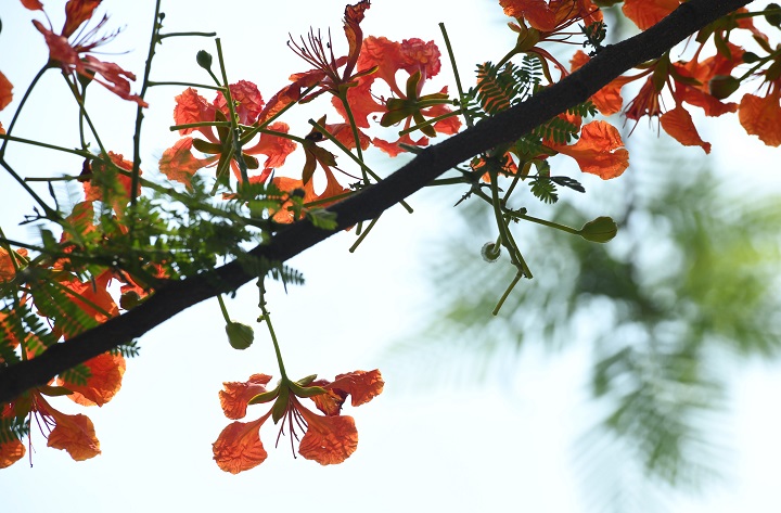 • ‘কৃষ্ণচূড়ার রাঙা মঞ্জুরি কর্ণে-আমি ভুবন ভুলাতে আসি গন্ধে ও বর্ণে’ জাতীয় কবি কাজী নজরুল ইসলামের এই মনোমুগ্ধকর গান আমাদের স্মরণ করিয়ে দেয় কৃষ্ণচূড়ার তাৎপর্য। আলোকচিত্রী: জাকির হোসাইন