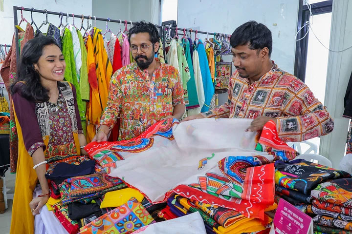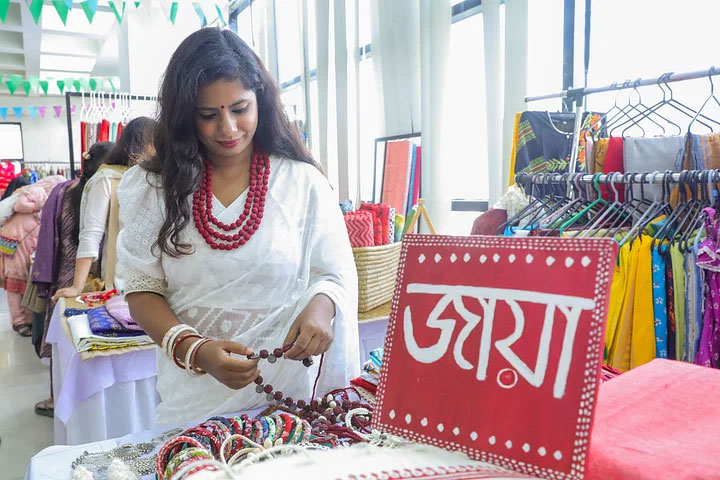 দেশীয় নকশায় মালা শাড়ি রয়েছে জায়া নামের স্টলে।